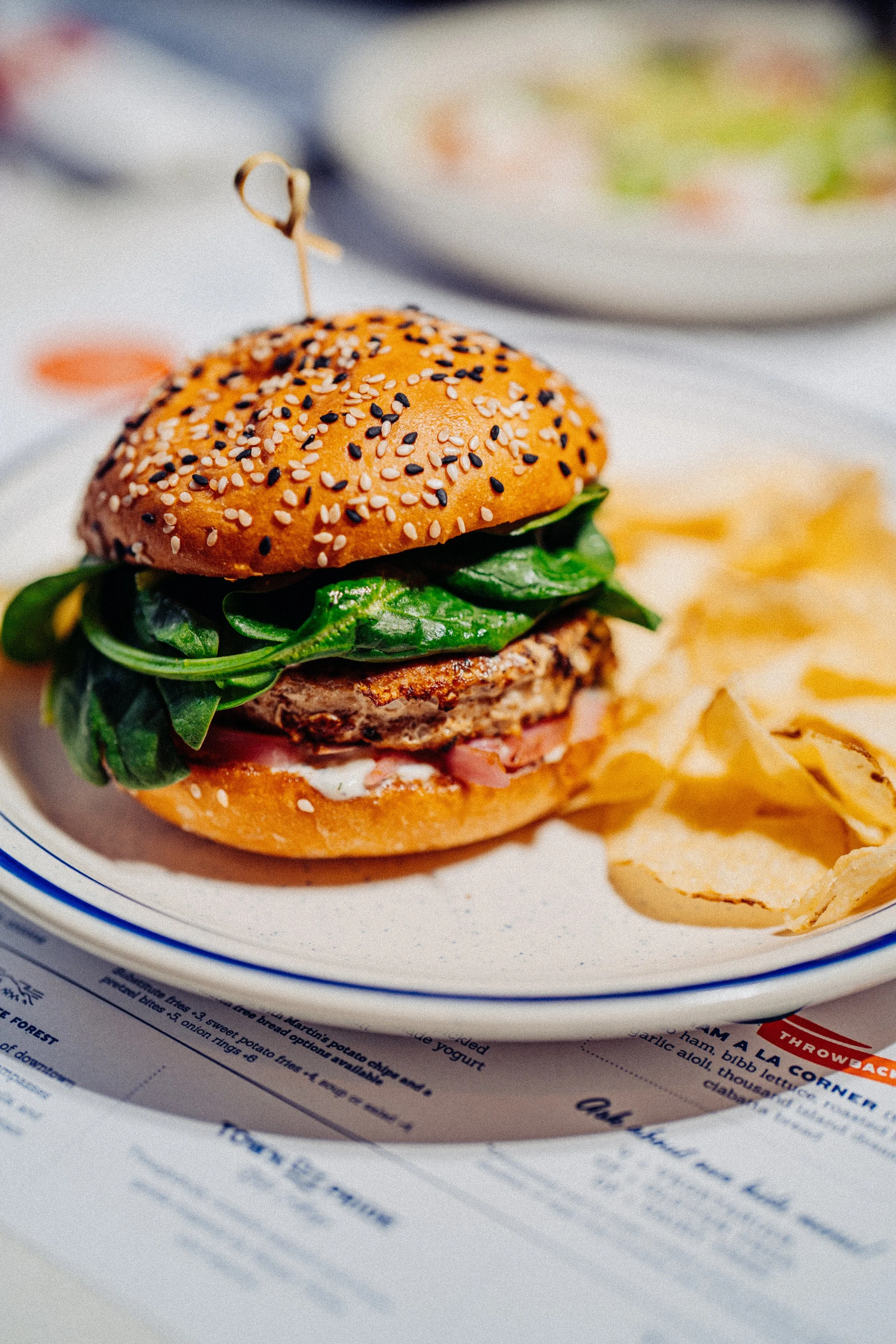 Mediterranean spiced turkey burger, pickled red onions, fresh spinach, house-made yogurt sauce, feta cheese, sesame bun