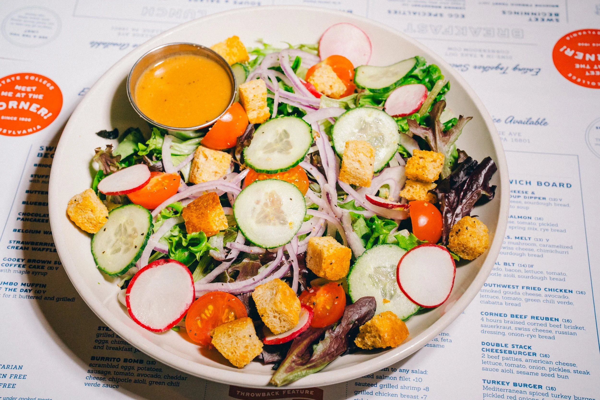 mixed baby lettuce, cucumbers, cherry tomatoes, radish, red onions, croutons, house vinaigrette